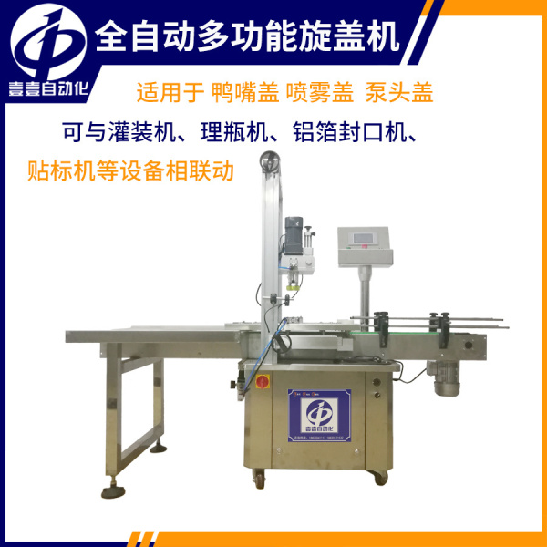 2、噴頭旋蓋機,穩(wěn)定性強,解決了噴頭、泵頭、噴霧泵、手扣式噴槍旋蓋難的問題,設(shè)有定位裝置,旋蓋標(biāo)準(zhǔn),操作方便,鎖蓋范圍寬,可鎖不同形狀規(guī)格的瓶蓋,鎖蓋轉(zhuǎn)速可調(diào),可根據(jù)不同瓶蓋調(diào)節(jié)松緊度,用于各種日化、醫(yī)藥、化工行業(yè)的噴頭泵頭噴霧泵手扣式噴槍瓶蓋鎖蓋。